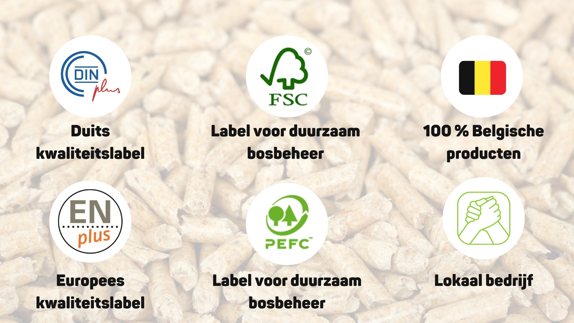Bestellen op Pelletstock is ook kiezen voor merken van pellets waarvan de kwaliteit werd gecontroleerd en gecertificeerd door verschillende labels waaronder het Europese kwaliteitslabel EN Plus en haar Duitse tegenhanger DIN Plus of nog de labels voor duurzaam bosbeheer FSC en PEFC.