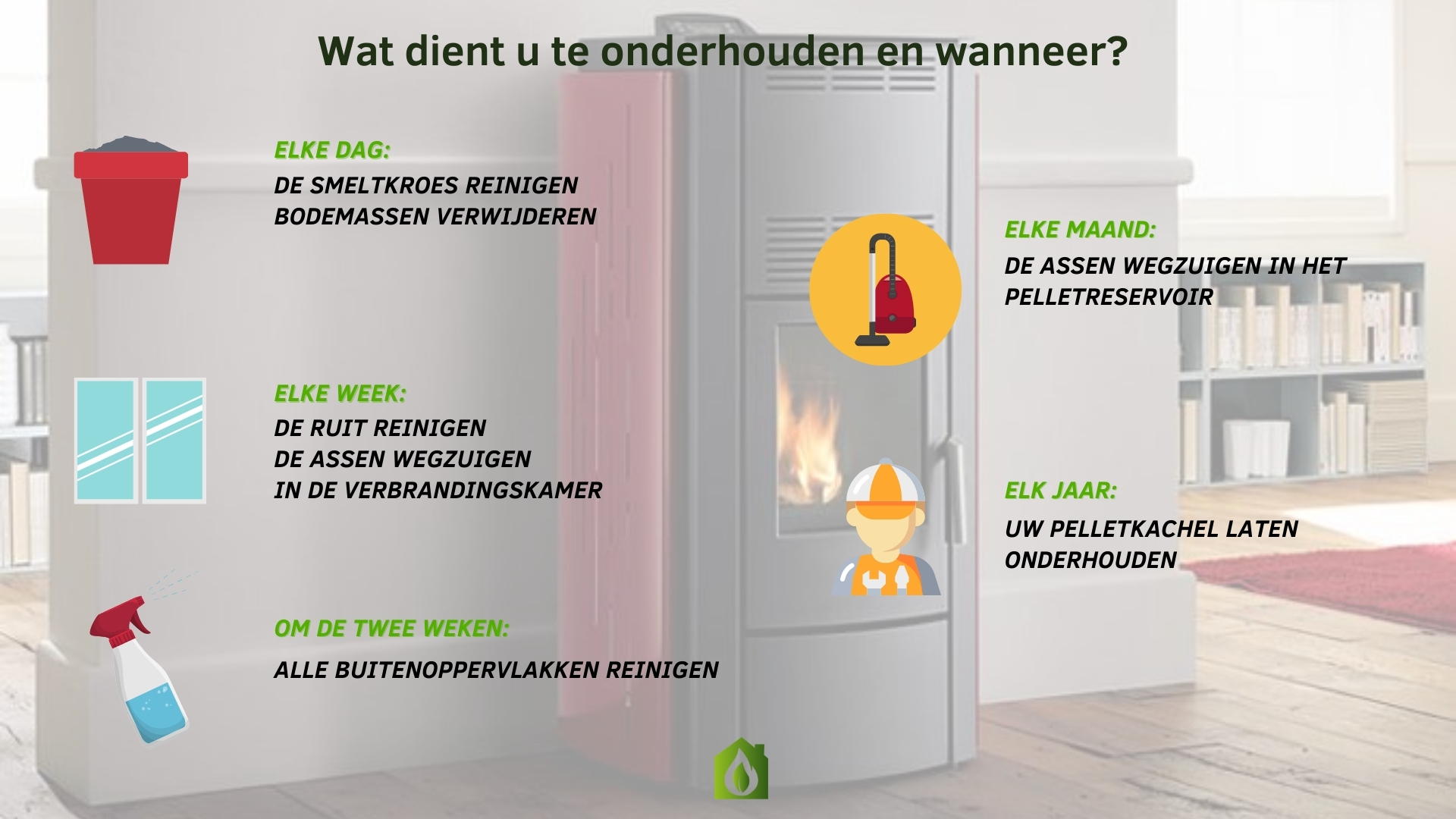 Schoonmaaktip van Pelletstocker: Gebruik een vochtige doek en dompel deze in de assen van uw kachel. Vermits de assen schurende eigenschappen hebben, zullen ze efficiënt uw ruit reinigen. Een economisch en natuurlijk onderhoudsmiddel!
